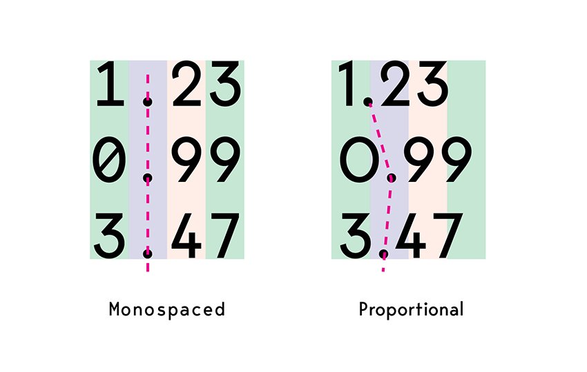 Another advantage of monospaced fonts can be seen when working with numbers.
