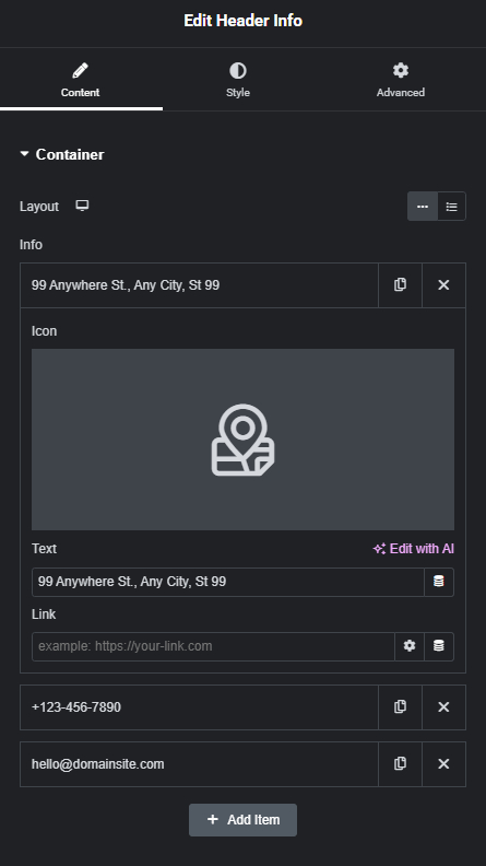 Display contact details like phone, email, or address with simple icons and clickable links, making it easy for users to reach you quickly.